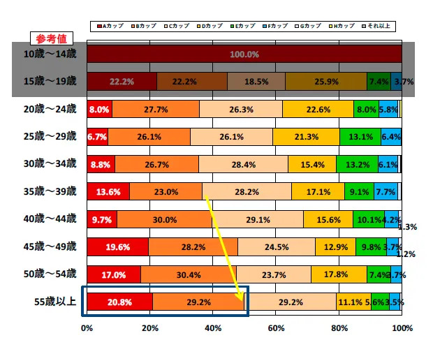 Eカップ以上の割合は約20%です。つまり5人セフレを作れば1人は巨乳ということに。巨乳はキープして、あらたなセフレを作りましょう。